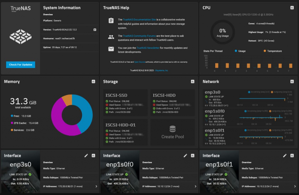 To have a full advantage of the VMware and Vmotion capabilities you need to have a Centralized storage system. Again, VMware requires expensive storage controllers and Raid Controllers to support with their platform. Luckily we can provide you with custom build NAS solution to seamlessly work with VMware at an affordable price. Our storage appliances are made with Robust Hardware that support affordable SATA SSDS, HDDS and NVMEs, and has robust RAID capabilities and Block storage features. Our storage appliance can provide VMware optimized block storage via ISCSI over 10G network giving superfast IO performance for your VMS. Our Storage appliances are backed by world’s number one storage controller software Trunas Scale and Crash proof ZFS file system.
