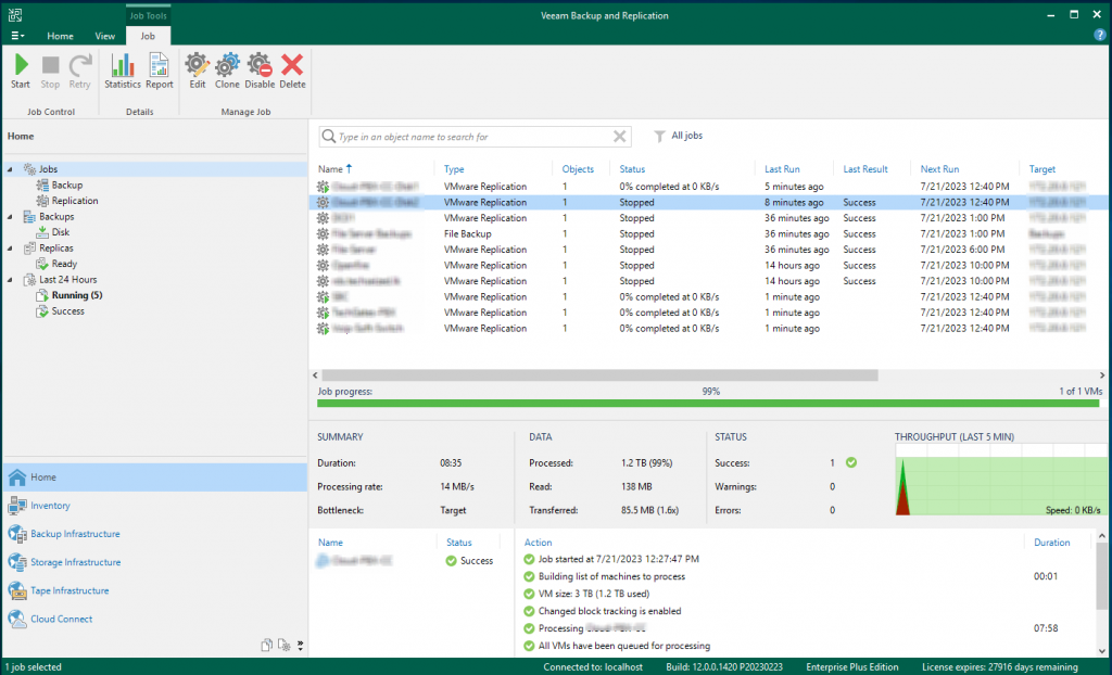 Disaster recovery plan implementation using VMware vSphere or Veeam backup and replication